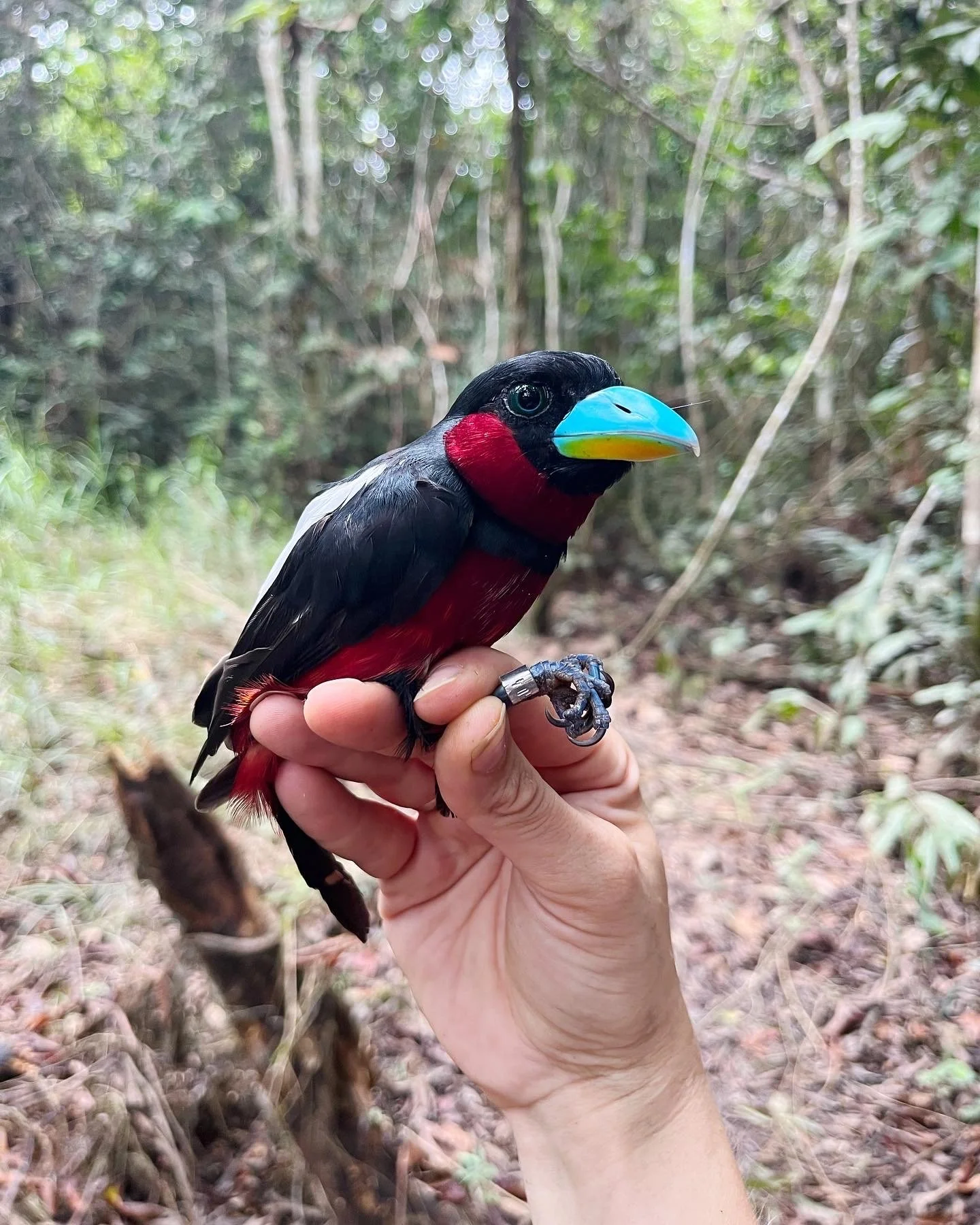 Black-and-Red Braodbill (Cymbirhynchus macrorhynchos) during field work at Samarakan Nursery, 2022.